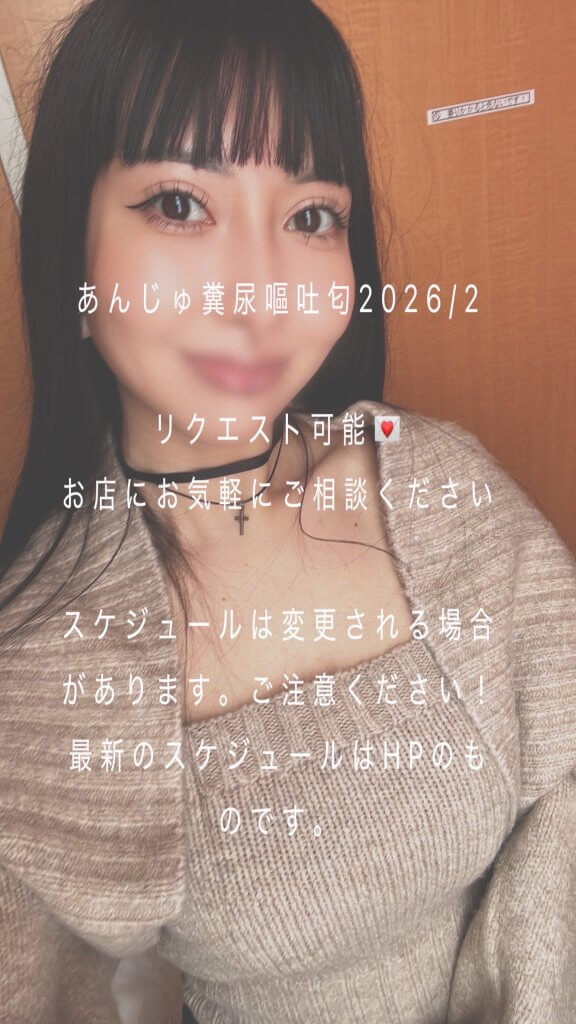女の子の投稿一覧 さよ さよ 2026年2月21日 🦋イ○マもおし○こも♡🦋 こんにちは!さよです🦋 11/30の13:00から会いに来てくれたお兄様へ🥰💌𓂃𓈒𓂂𓏸 オナニーと事前食事、おしっこのオプションをつけてく … Read more あんじゅ あんじゅ 2026年2月3日 2月スケジュール リクエスト可能💌 お店にお気軽にご相談ください スケジュールは変更される場合があります。ご注意ください!最新のスケジュールはお店HPのもので … Read more すい すい 2026年2月2日 3色ゲボ!🌈 2026.1.9 Uお兄さんありがとうございました!👏 まさかの2時間で3回もできるとは思わなくて感激してしまった✨天才(▭-▭)✧✨ 個人 … Read more あんじゅ あんじゅ 2026年1月20日 スケジュール追加 1月スケジュール追加しました💡 もう1月後半、はやい あんじゅ あんじゅ 2026年1月12日 1月後半スケジュール あんじゅ あんじゅ 2026年1月2日 あけおめ 2025プレイした子達ありがとう 2026もよろしくね🌈 前 1234…13 次